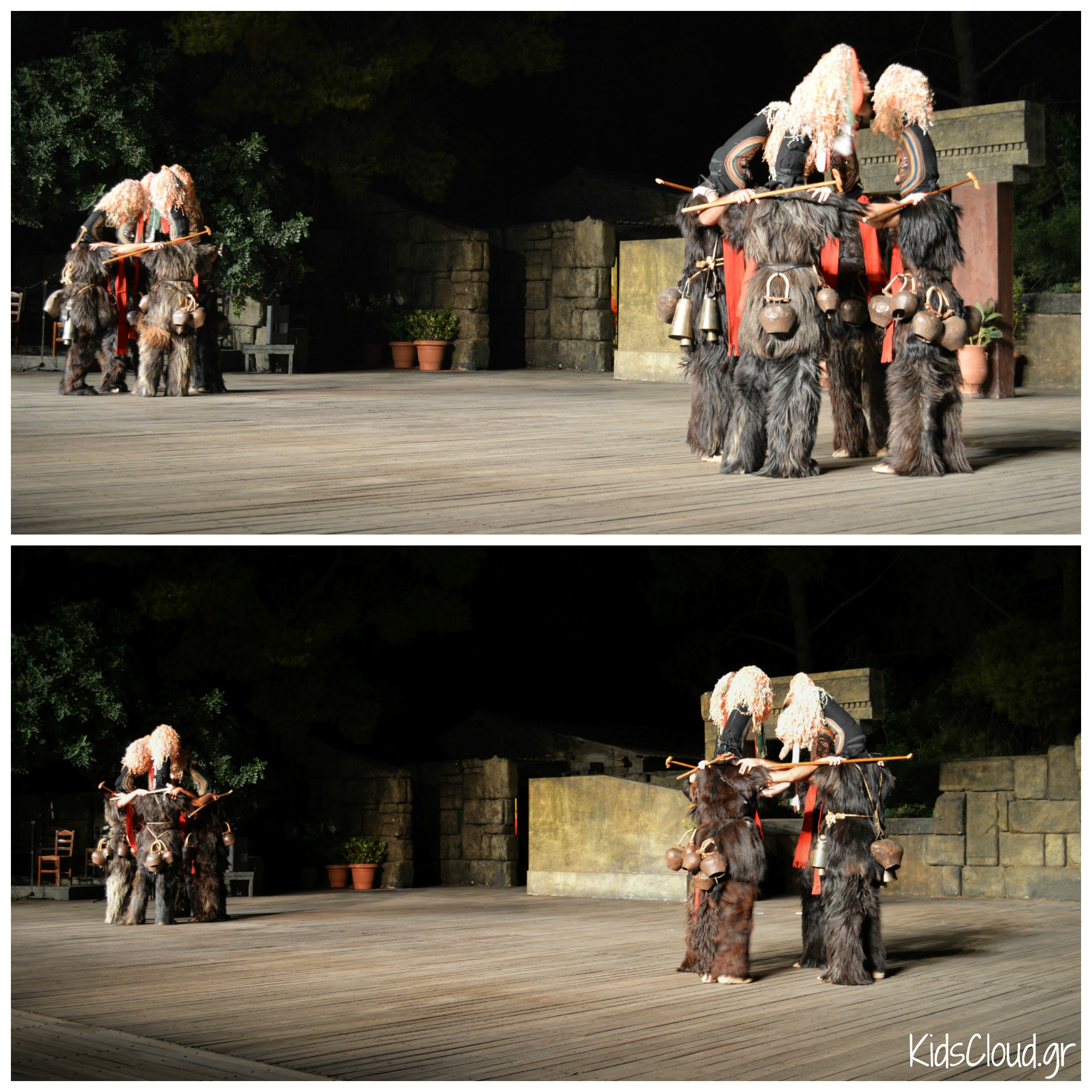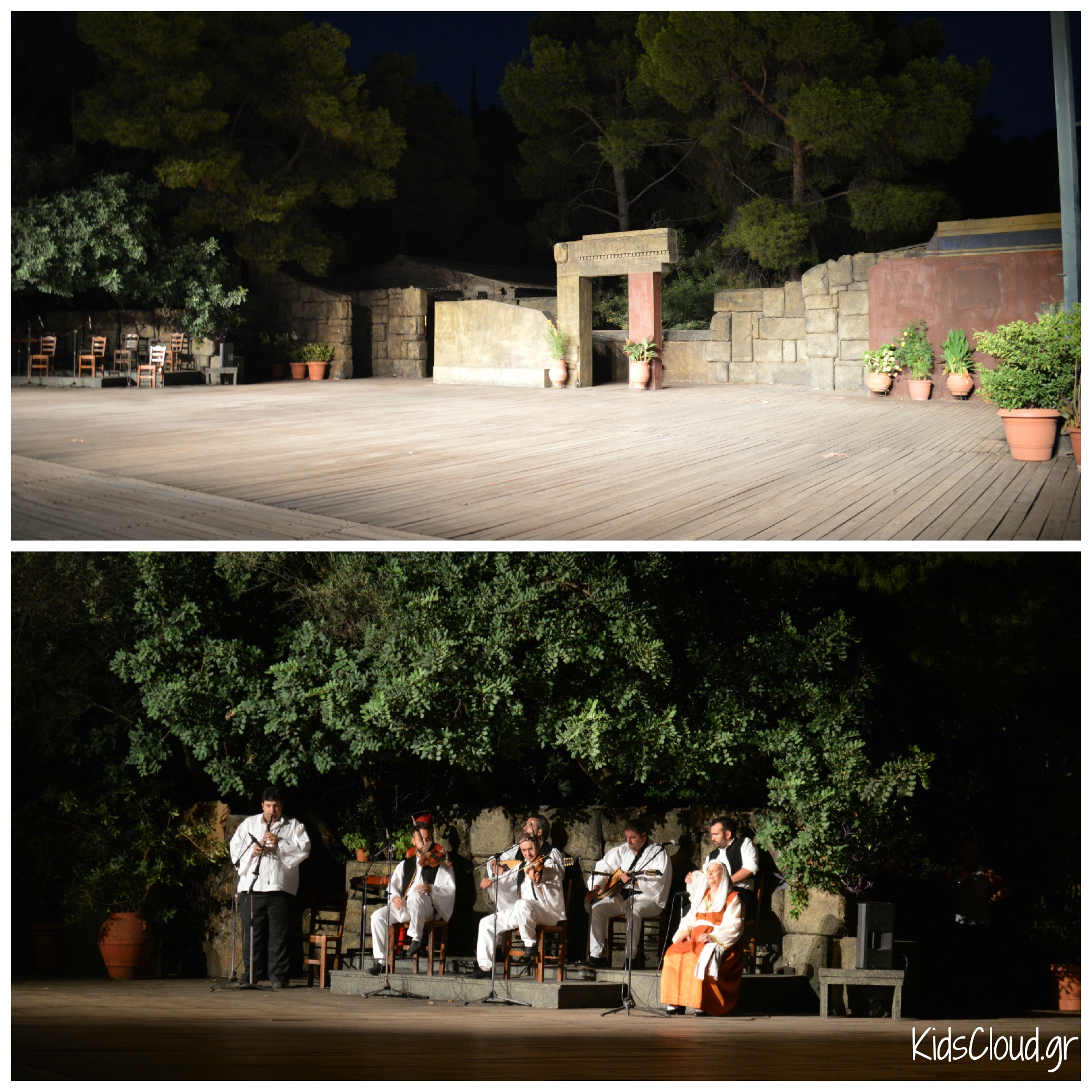 Η σκηνή, που μοιάζει σαν μια μεγάλη αυλή σε συνδυασμό με τη μουσική και την εικόνα σε μεταφέρουν σε μία γιορτή, σαν αυτές που οι περισσότεροι από εμάς φανταζόμαστε, ότι γινόντουσαν εκείνα τα παλιά χρόνια.