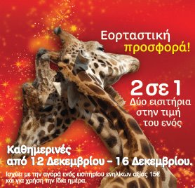 Εμείς θα πάμε να τον δούμε και θα δούμε και τα άλλα 2.000 ζωάκια που φιλοξενεί το πάρκο και μάλιστα θα φροντίσουμε να πάμε την επόμενη εβδομάδα, για να εκμεταλλευτούμε και μία προσφορά που έχουν: Από την Δευτέρα 12 Δεκεμβρίου μέχρι την Παρασκευή 16 Δεκεμβρίου θα πάρουμε 2 εισιτήρια στην τιμή του ενός!! Πολύ καλό το λες!
